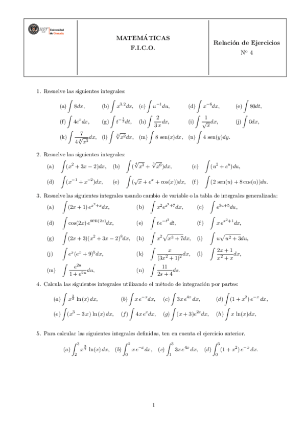 tema 4 completo con teoría, ejercicios, método cambio variable e integración por partes