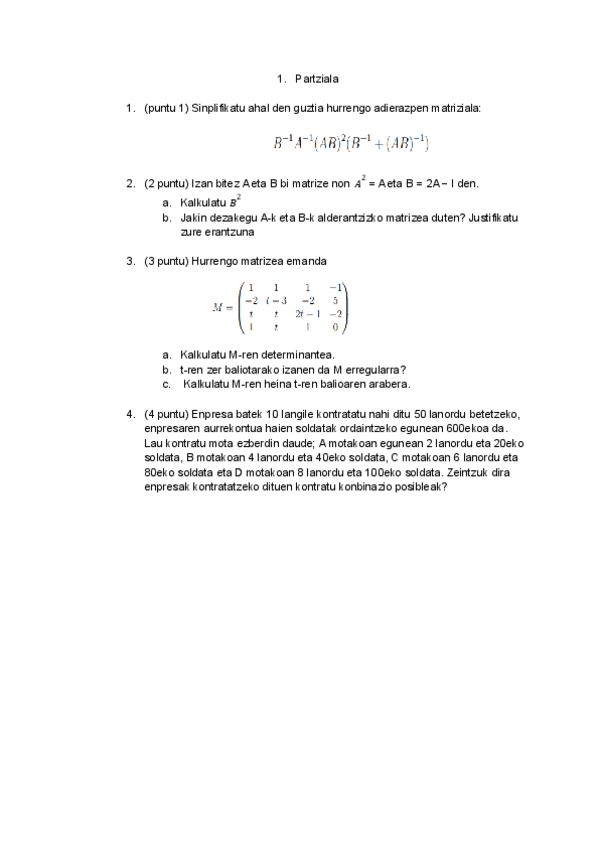 He publicado nuevos examenes de 1º Matemáticas: Matematikako partzialak