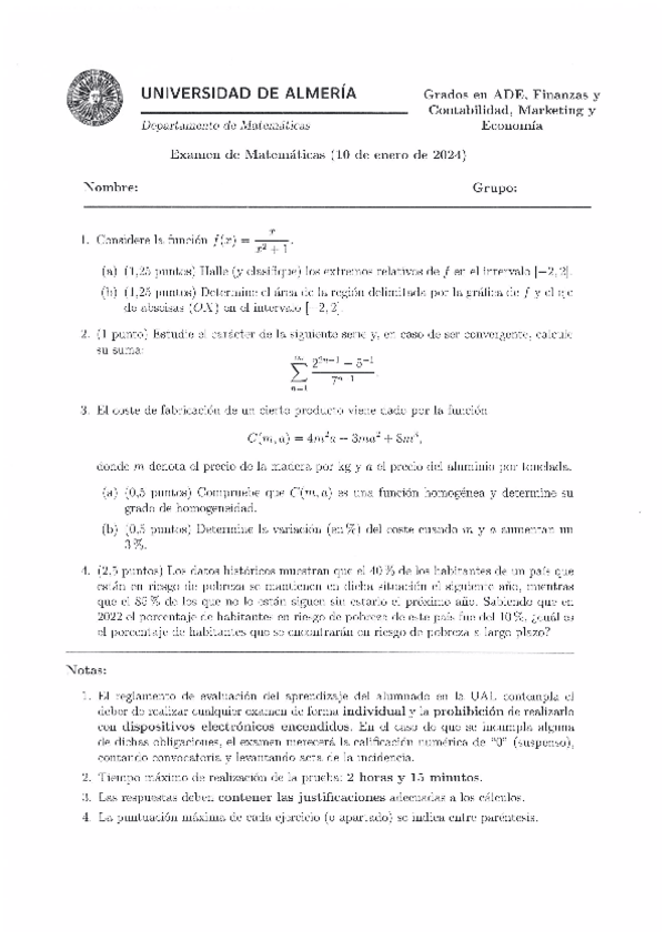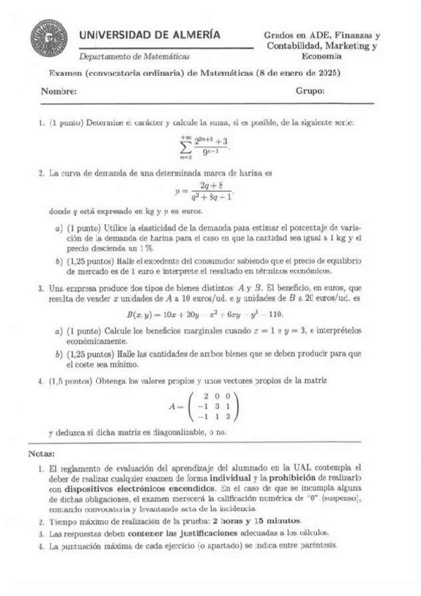 He publicado nuevos examenes de 1º Matemáticas: Ordinaria-Enero-2025.pdf