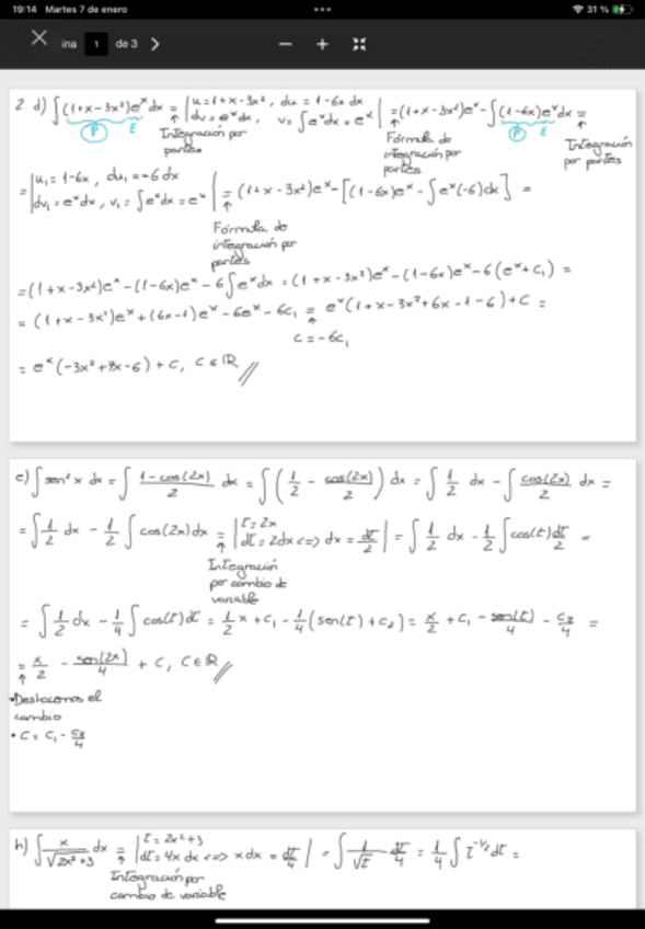 He publicado nuevos ejercicios de 1º Matemáticas: INTEGRALES POR PARTES.pdf