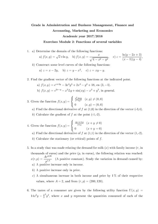 He publicado nuevos ejercicios de 1º Matemáticas: Derivadas-parciales-y-homogeneidad.pdf