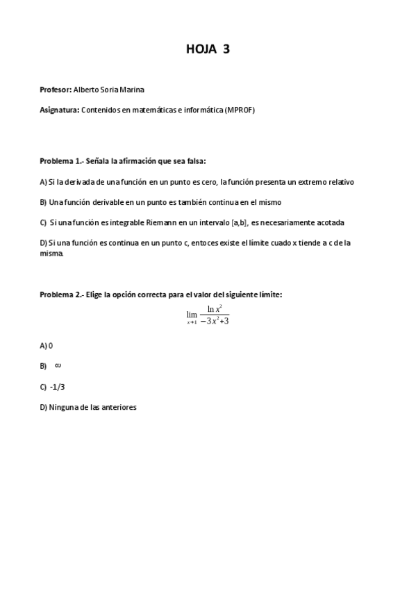 He publicado nuevos ejercicios de 1º Matemáticas: Ejercicios-LHopital.pdf
