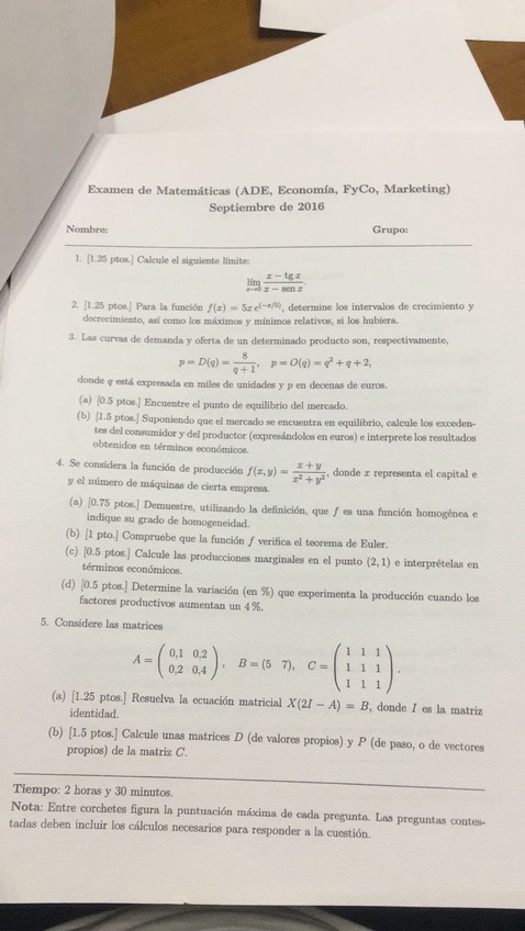 He publicado nuevos examenes de 1º Matemáticas: Examen Septiembre 2016.jpg