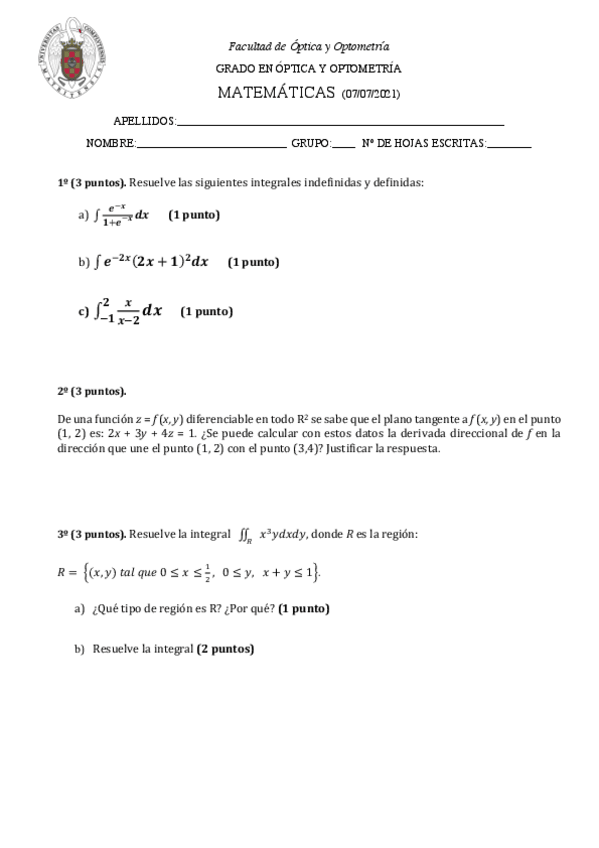 He publicado nuevos ejercicios de 1º Matemáticas: Integrales-de-examenes.pdf