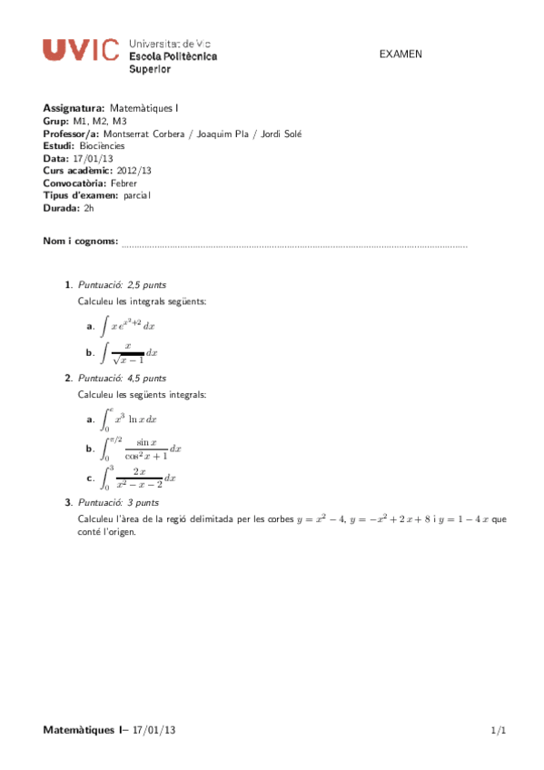 He publicado nuevos apuntes de 1º Matemáticas: SOLUCIONS EXAMEN CALCUL INTEGRAL
