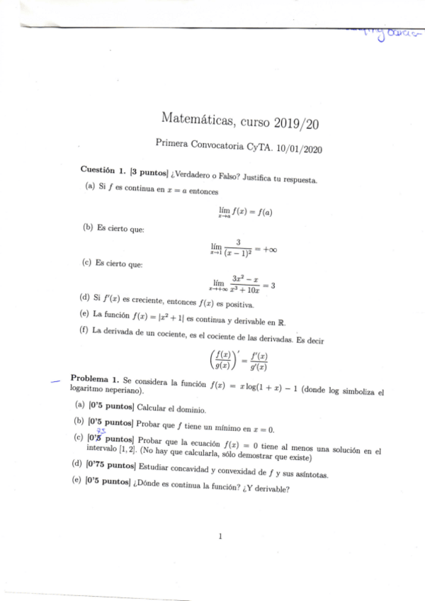¿Podéis subir los exámenes de enero y febrero (2019) de matemáticas?