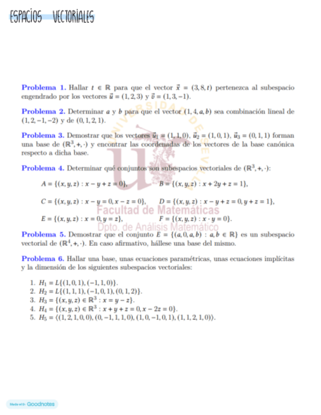 He publicado nuevos ejercicios de 1º Matemáticas: Espacios-vectoriales.pdf