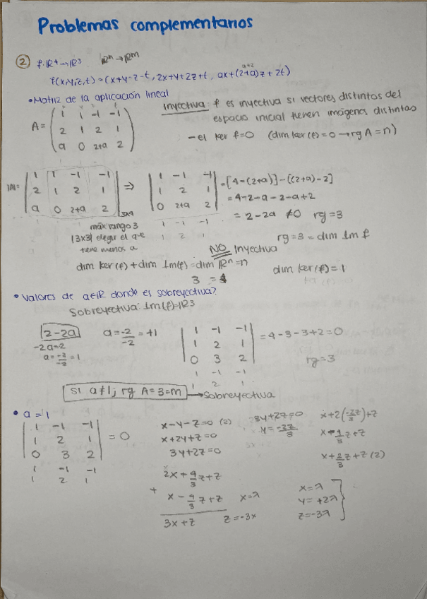 EJERCICIO RESUELTO: hallar pibotes; bases de la imagen; decir si es sobreyectiva, inyectiva o biyectiva; y hallar su núcleo.