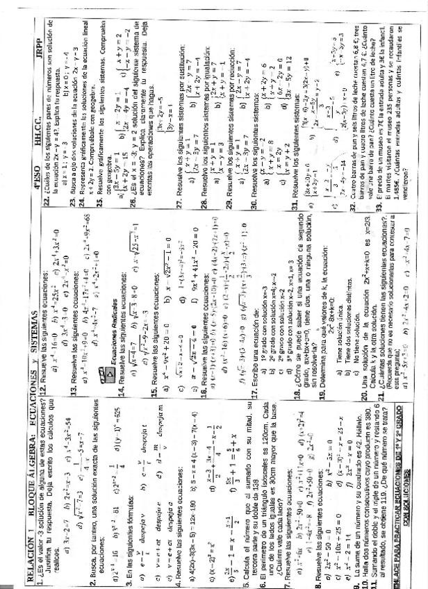 EJERCICIOS DE SISTEMAS DE ECUACIONES 4º eso