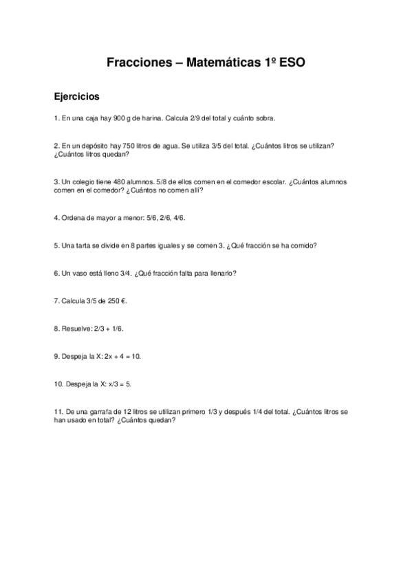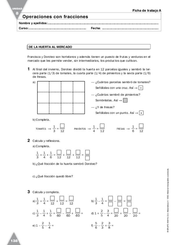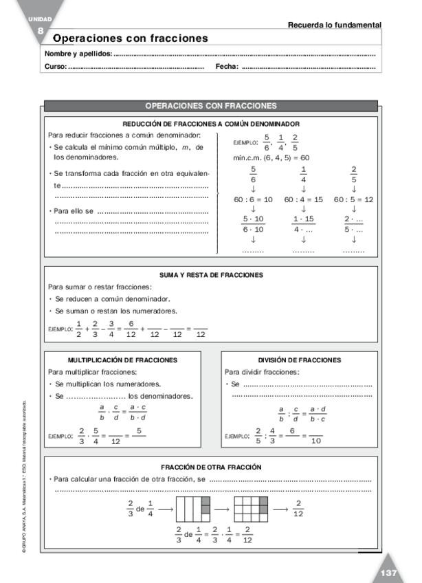 Ejercicios sobre fracciones de ediciones anaya