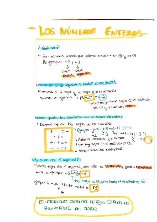 Los números enteros - Apuntes 1 ESO