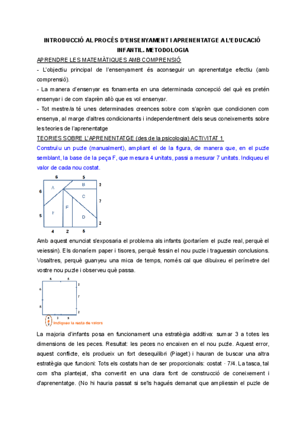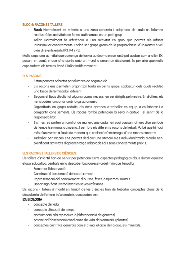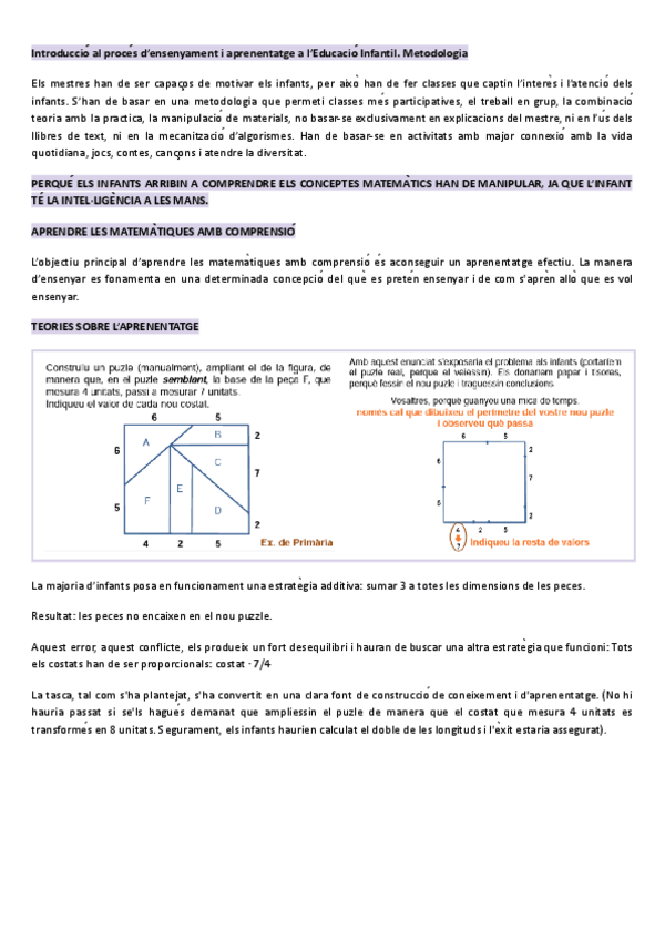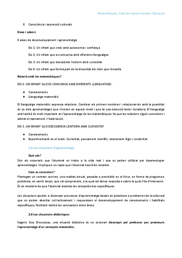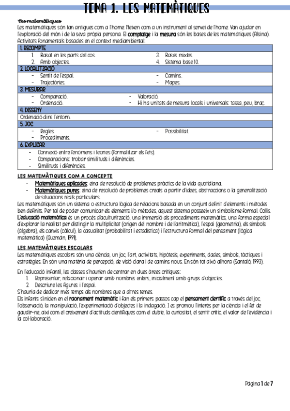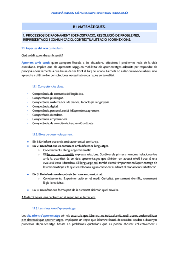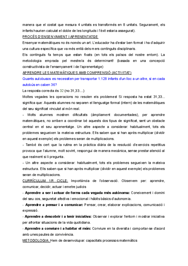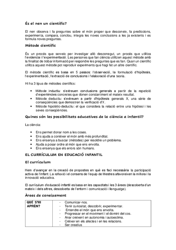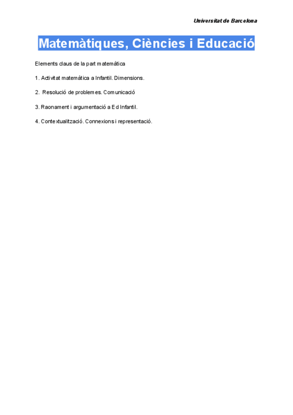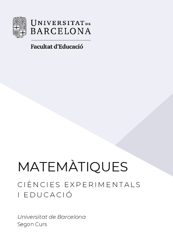 Resum Matemàtiques, Ciències Experimentals i Educació. Segon curs, Universitat de Barcelona. educació infantil