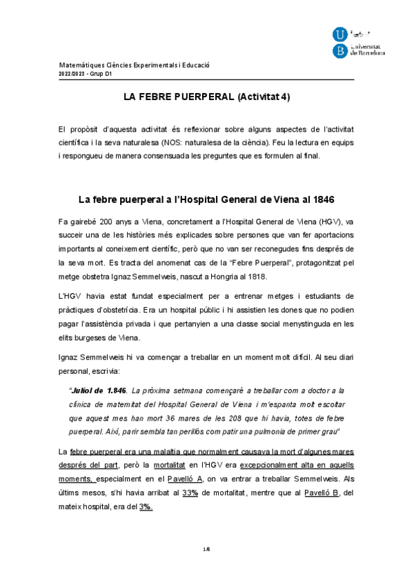 He publicado nuevos ejercicios de 2º Matematiques, Ciencies Experimentals i Educacio: Activitat-4La-febre-Puerperal.docx.pdf