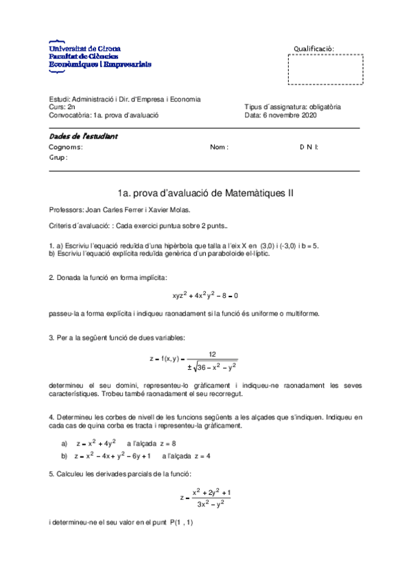 Matemàtiques Ii