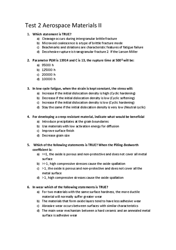 He publicado nuevos examenes de 2º Materiales Aeroespaciales II: PREGUNTAS TEST 2 CON SOLUCIÓN.pdf