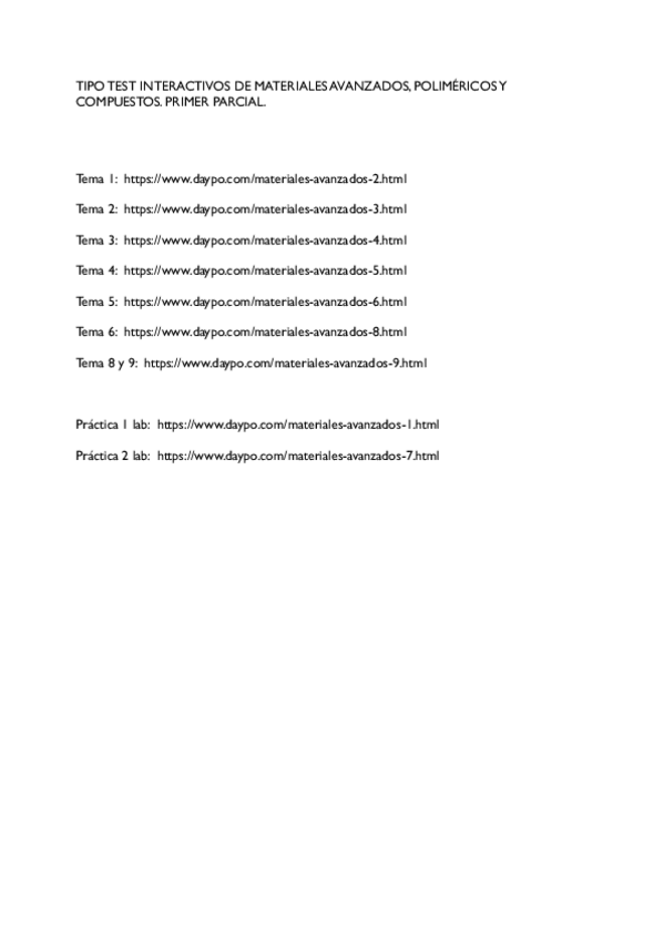 He publicado nuevos test de 4º Materiales Avanzados, Poliméricos, Compuestos: Test-interactivos-Primer-parcial.pdf