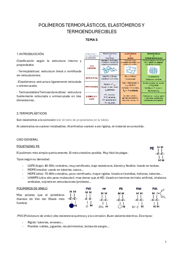 He publicado nuevos apuntes de 4º Materiales Avanzados, Poliméricos, Compuestos: Resumen-TODO-Bloque1.pdf
