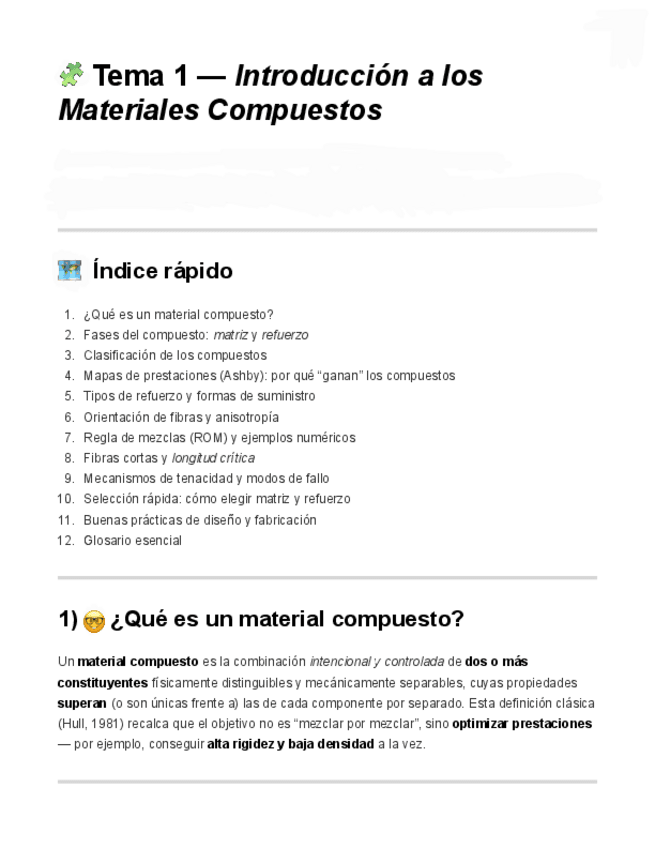 He publicado nuevos apuntes de 4º Materiales Avanzados, Poliméricos, Compuestos: TEMA-1-Compuestos.pdf