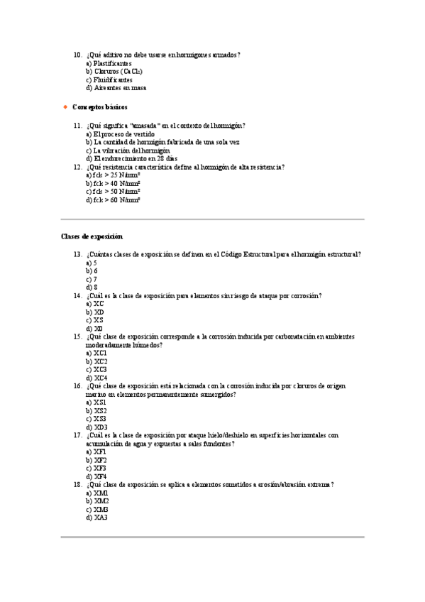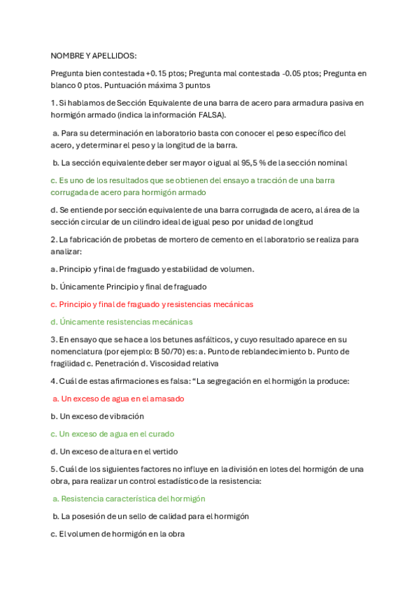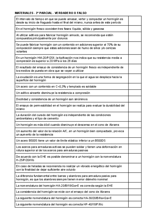 Tipo test MATERIALES DE LA CONSTRUCCIÓN UPV - Hormigón Parte 1