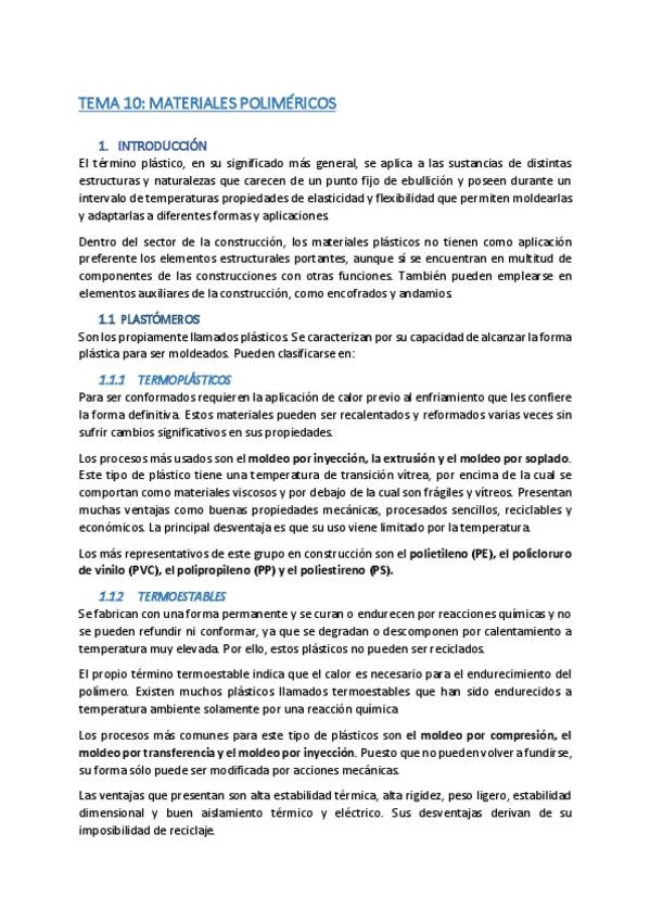 He publicado nuevos apuntes de 3º Materiales de Construcción: T10-POLIMERICOS.pdf