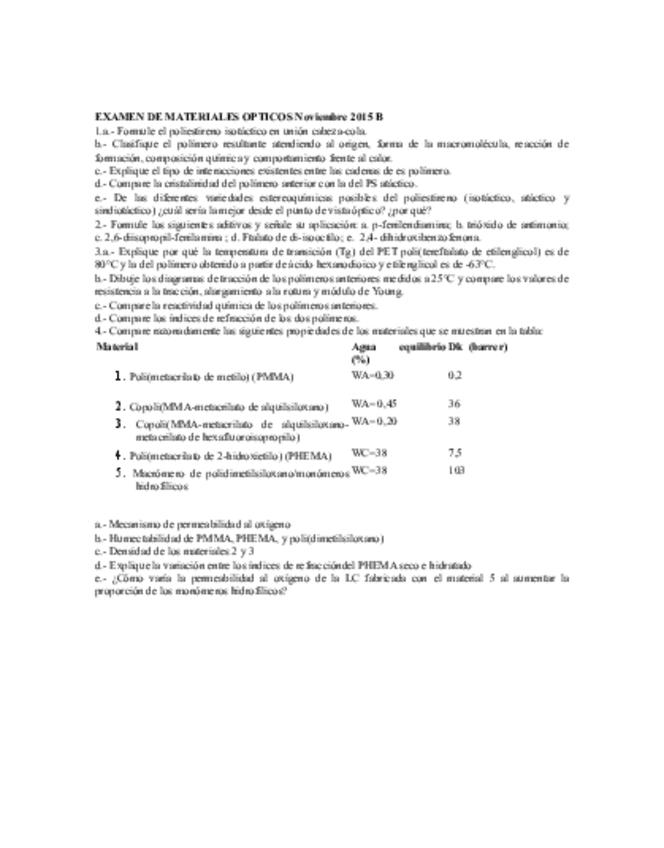 He publicado nuevos apuntes de 3º Materiales en Óptica Oftálmica y Lentes de Contacto: examen-febrero-2016.pdf