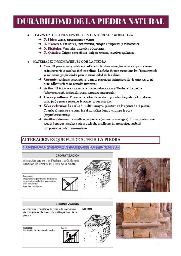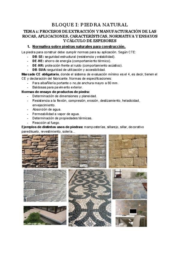 Primer parcial: apuntes de piedra natural y durabilidad