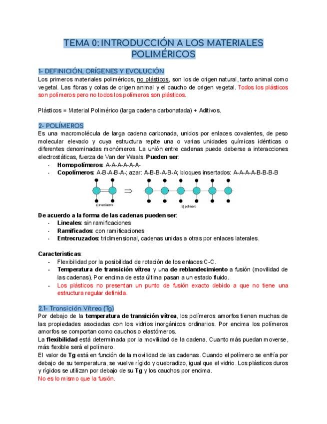 He publicado nuevos apuntes de 2º Materiales II: T0-INTRODUCCION-A-LOS-MATERIALES-POLIMERICOS.pdf
