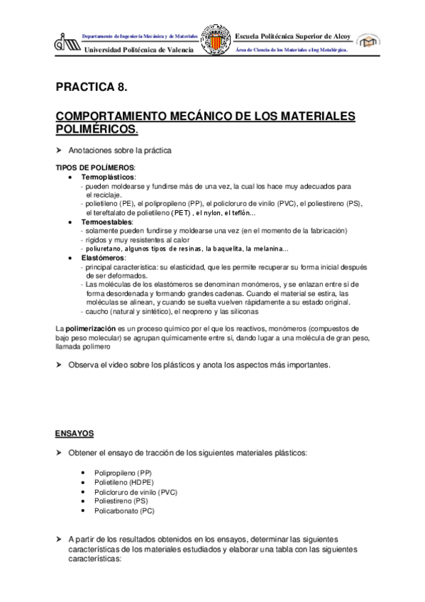 He publicado nuevos practicas de 2º Materiales II: PRACTICA8Caract.-Mat.-PolimericosI.pdf