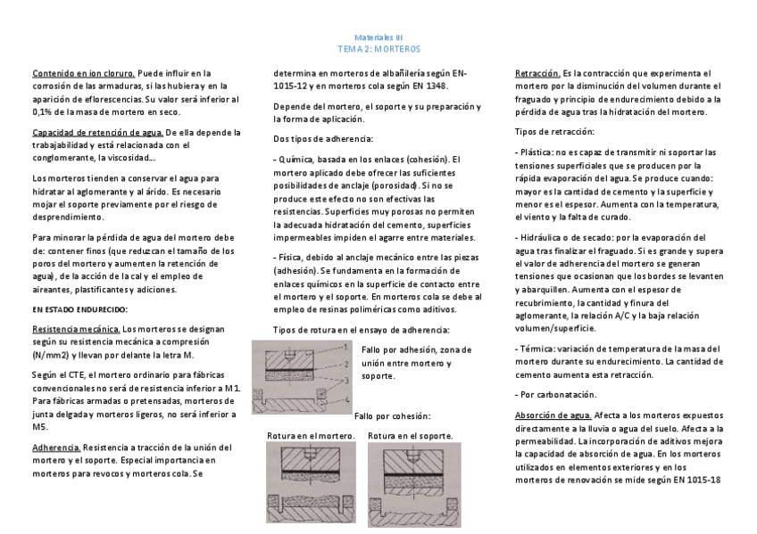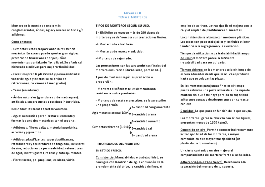 He publicado nuevos apuntes de 2º MATERIALES III: ENSAYOS Y CONTROL: Resúmenes -Tema 2: Morteros.pdf