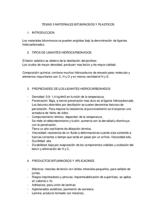 He publicado nuevos apuntes de 2º MATERIALES III: ENSAYOS Y CONTROL: TEMAS-5-MATERIALES-BITUMINOSOS-Y-PLASTICOS-p.odt