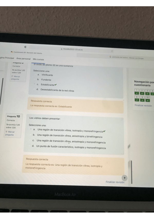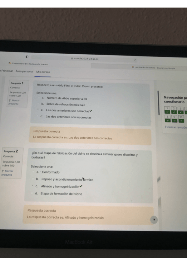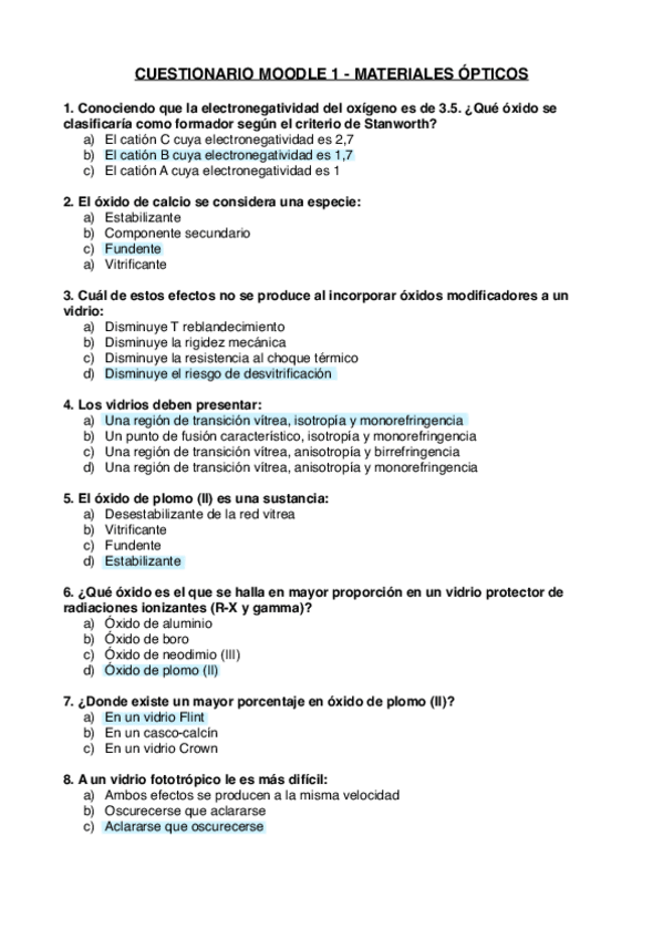 Test B1 Materiales ópticos. Todas las respuestas correctas