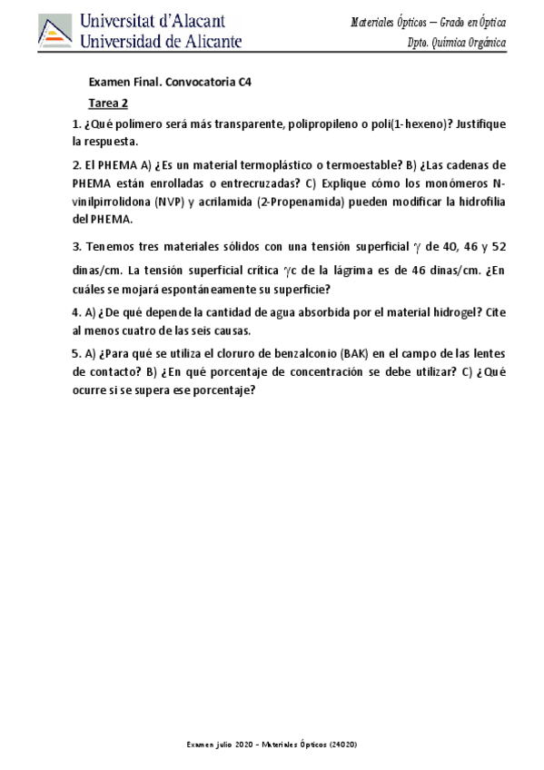 He publicado nuevos examenes de 2º Materiales Opticos: Universitat-dAlacant.pdf