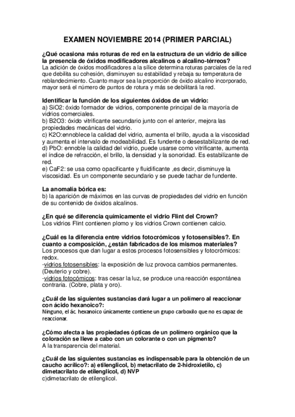He publicado nuevos examenes de 2º Materiales Opticos: Respuestas examenes bloque 1