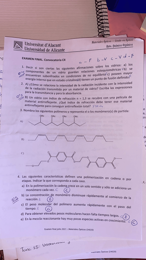 He publicado nuevos examenes de 2º Materiales Opticos: Parciales 2020 respuestas