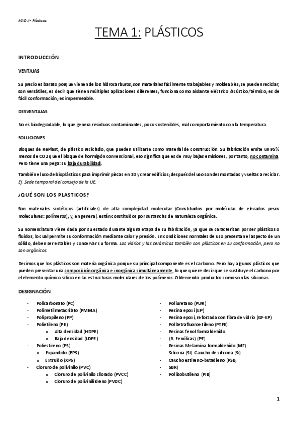 He publicado nuevos apuntes de 1º Materiales para el diseño II: TEMA-1-PLASTICOS.pdf