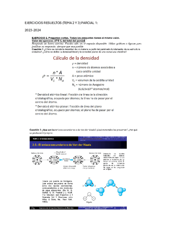 Ejercicios de teoría y problemas RESUELTOS para el primer parcial de materiales