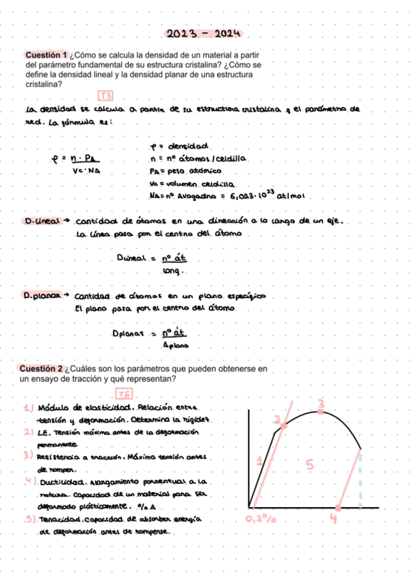 Apuntes y ejercicios de examen del tema 1 y tema 2 de materiales