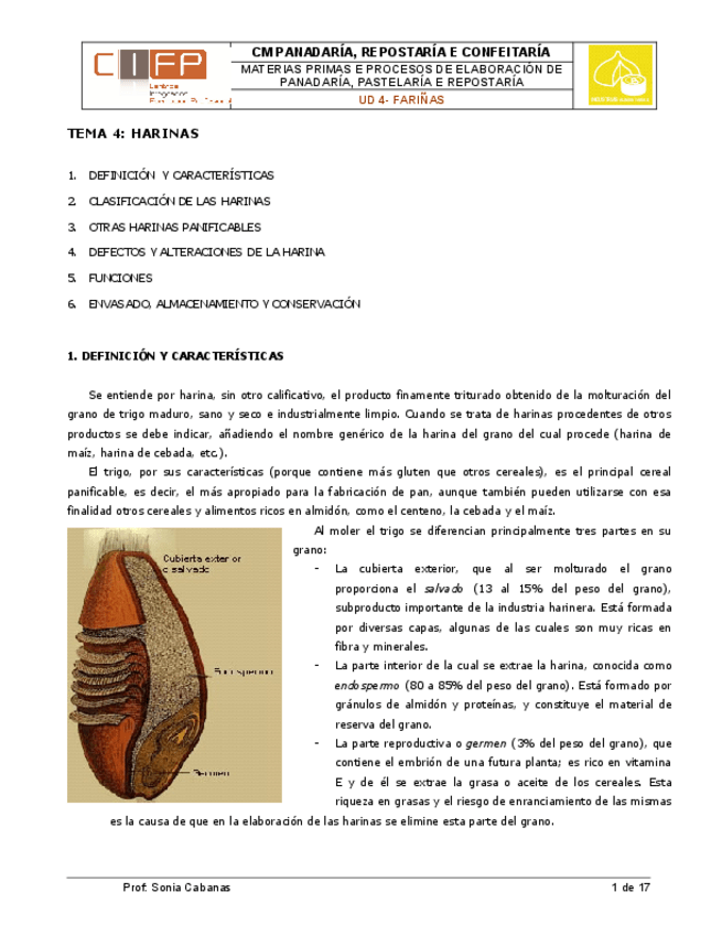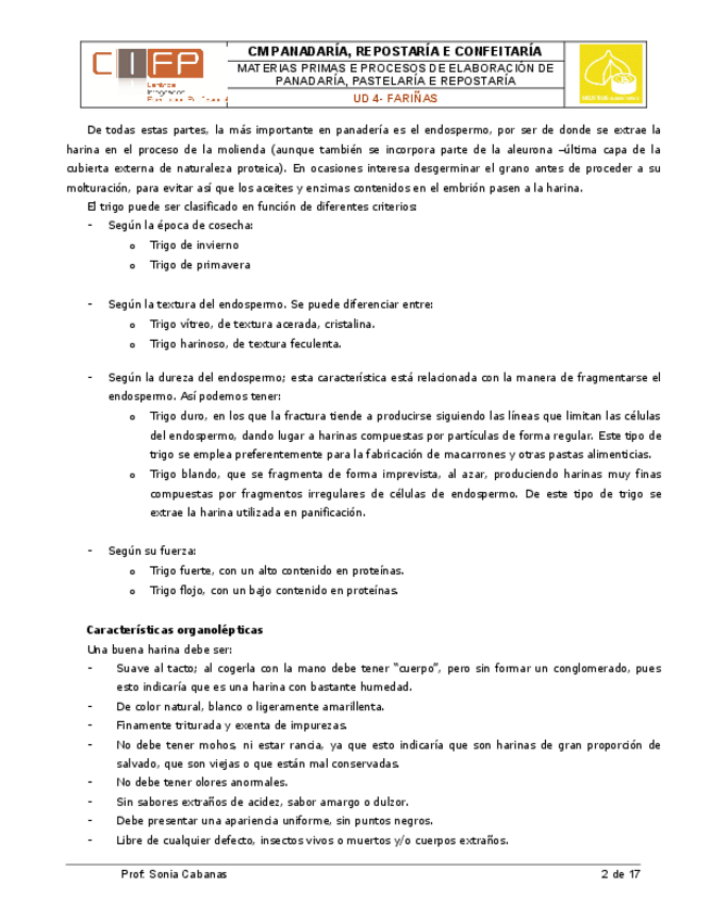 He publicado nuevos apuntes de Materias primas y procesos en panadería, pastelería y repostería: 4. Harinas.pdf