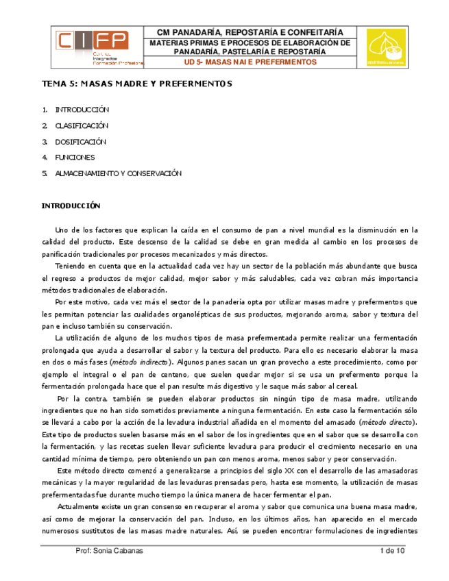 He publicado nuevos apuntes de Materias primas y procesos en panadería, pastelería y repostería: 5. Masa madre y prefermentos.pdf