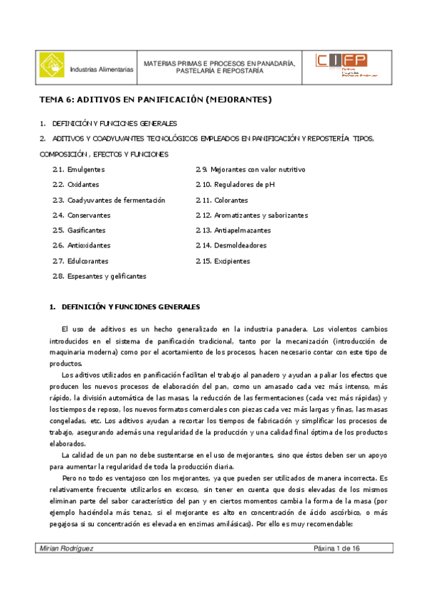 He publicado nuevos apuntes de Materias primas y procesos en panadería, pastelería y repostería: ADITIVOS.docx