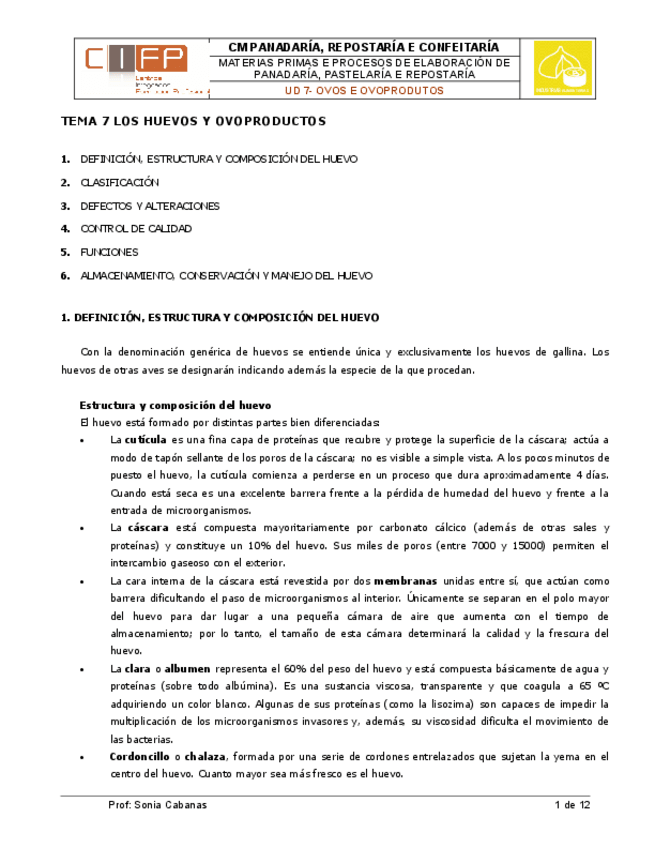 He publicado nuevos apuntes de Materias primas y procesos en panadería, pastelería y repostería: 7. Los huevos y ovoproductos.pdf