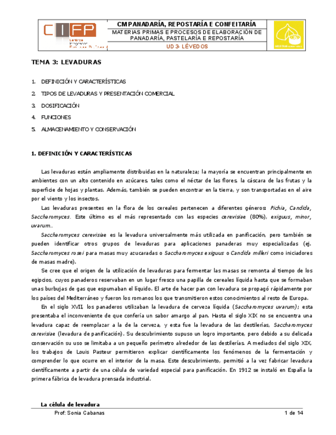He publicado nuevos apuntes de Materias primas y procesos en panadería, pastelería y repostería: 3. Levaduras.pdf