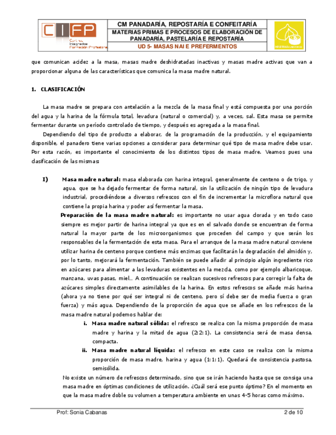He publicado nuevos apuntes de Materias primas y procesos en panadería, pastelería y repostería: 5. Masa madre y prefermentos.pdf