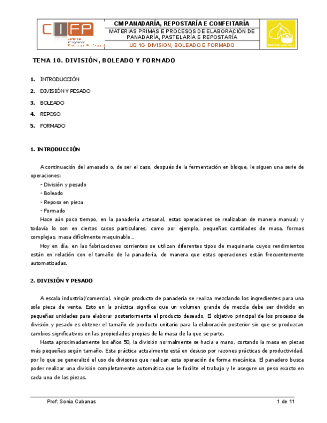 He publicado nuevos apuntes de Materias primas y procesos en panadería, pastelería y repostería: 10. División, boleado y formado.pdf