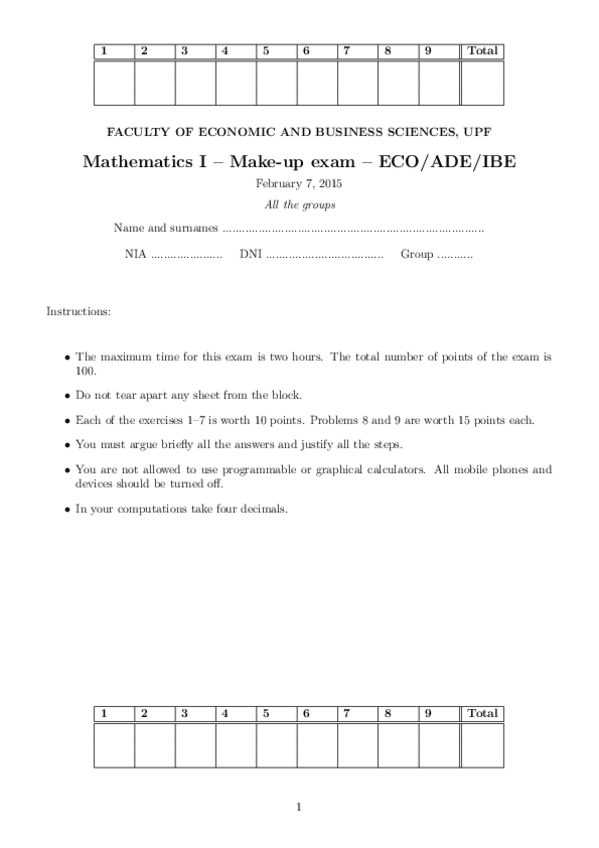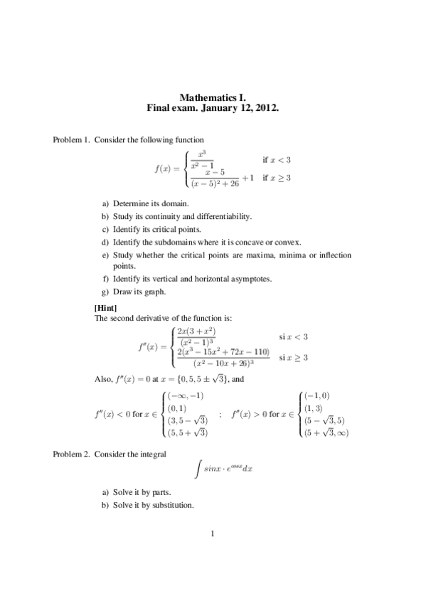 He publicado nuevos examenes de 1º Mathematics I: mathematics I