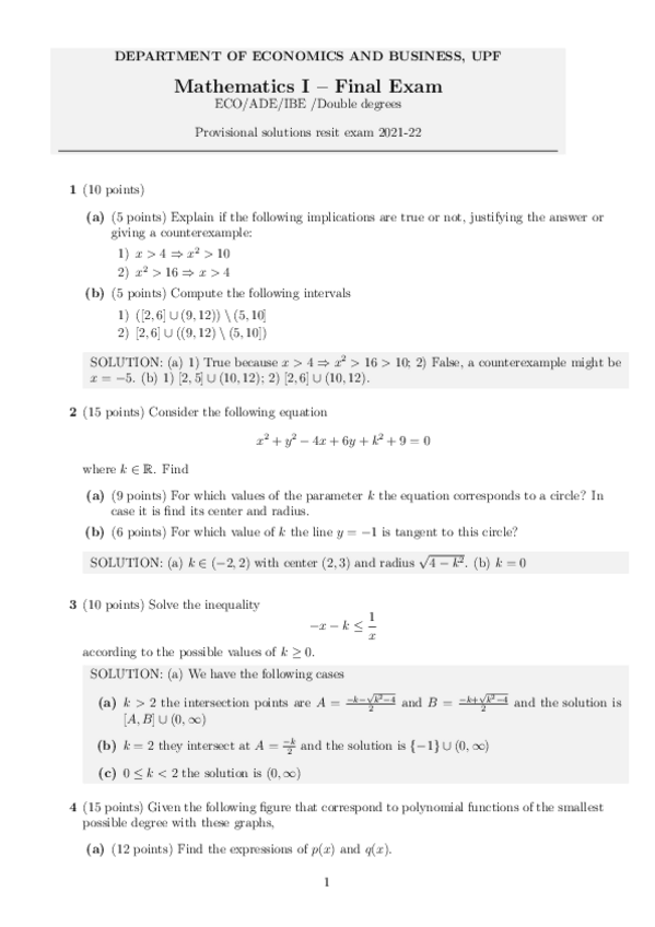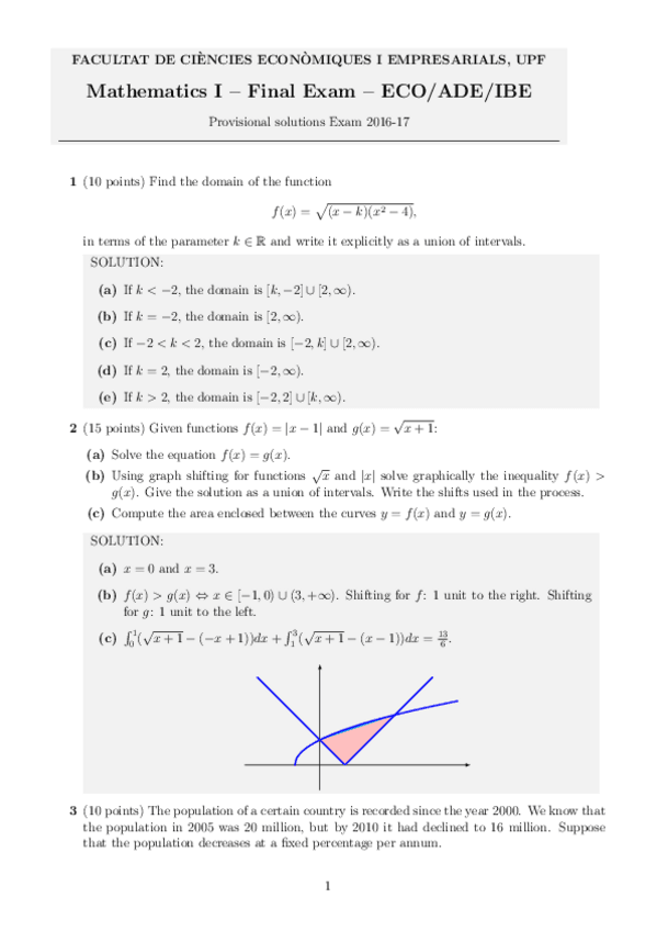 Final exams (2014-2022) - Mathematics I