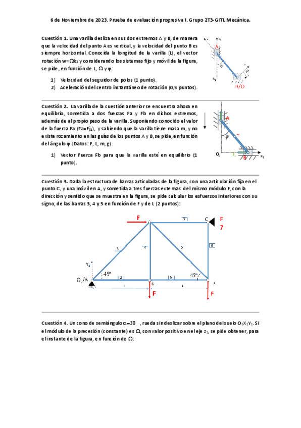 He publicado nuevos examenes de 2º Mecánica: Parcial-Estatica-2022-2023.pdf