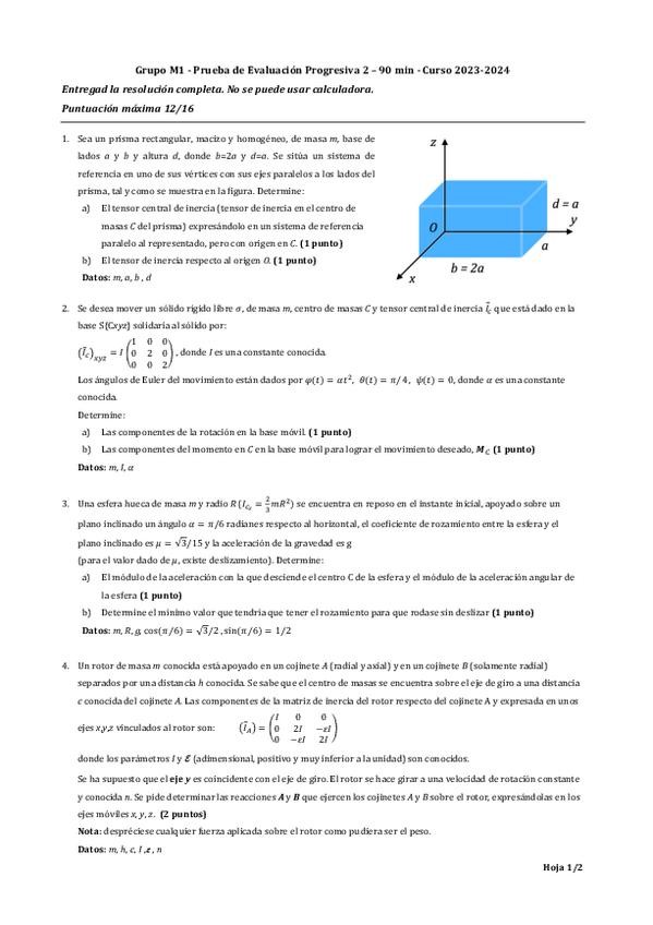 He publicado nuevos pec de 2º Mecánica: PEC2-Mecanica-2324-RESUELTO.pdf.pdf
