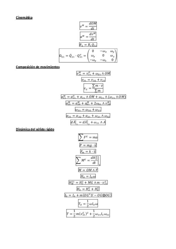 Formulario PEI 1 para 10. Perfecto para llevar al examen. Incluye dinámica + cinemática + geometría de masas.
