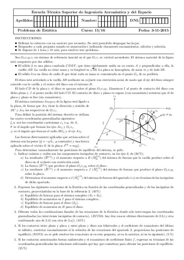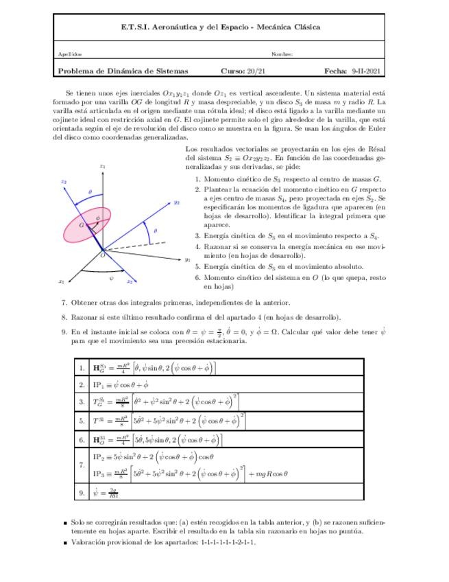 Examenes Dinamica del solido con solucion